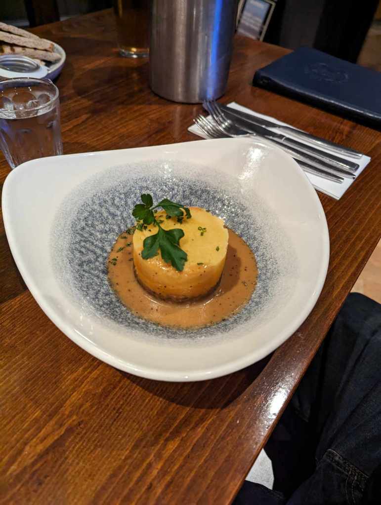 Then we tried the Thai prawn cocktail served with prawn crackers, and the miniature haggis, neeps, and tatties drizzled in a creamy peppercorn sauce.