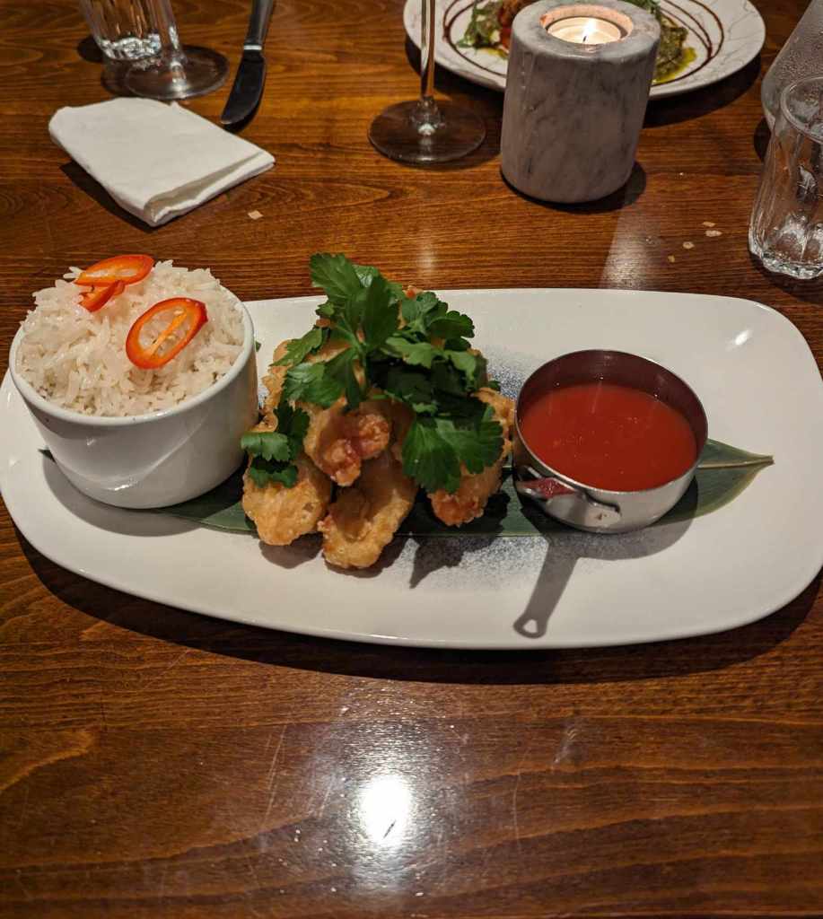 Moving on to the main courses, we tried the crispy tempura chicken with sweet and sour sauce and coconut rice. The chicken tasted great, but in my opinion, the sauce tasted more like ketchup than sweet and sour. The stand-out was the coconut rice, a refreshing change which was served in a generous portion.